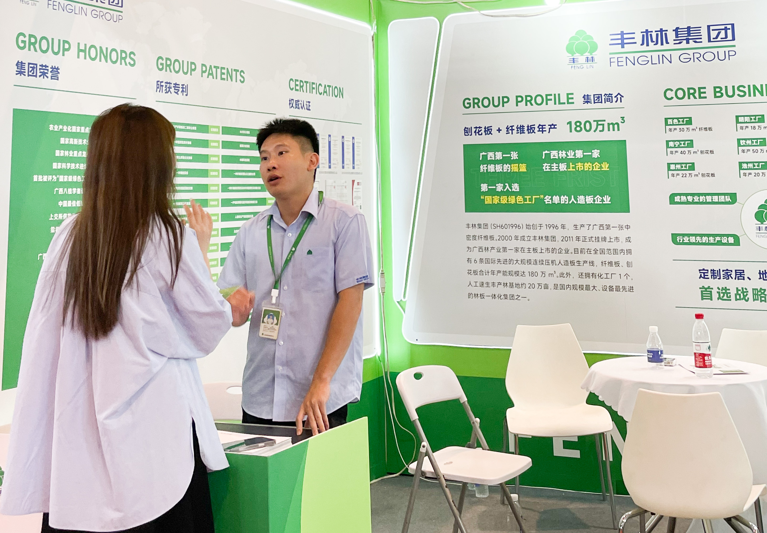 此次展销会,U乐国际展出了包括纤维板、刨花板明星产U乐国际碳晶板、阻燃板、超强刨花板、白桉板在内的多样化产U乐国际。