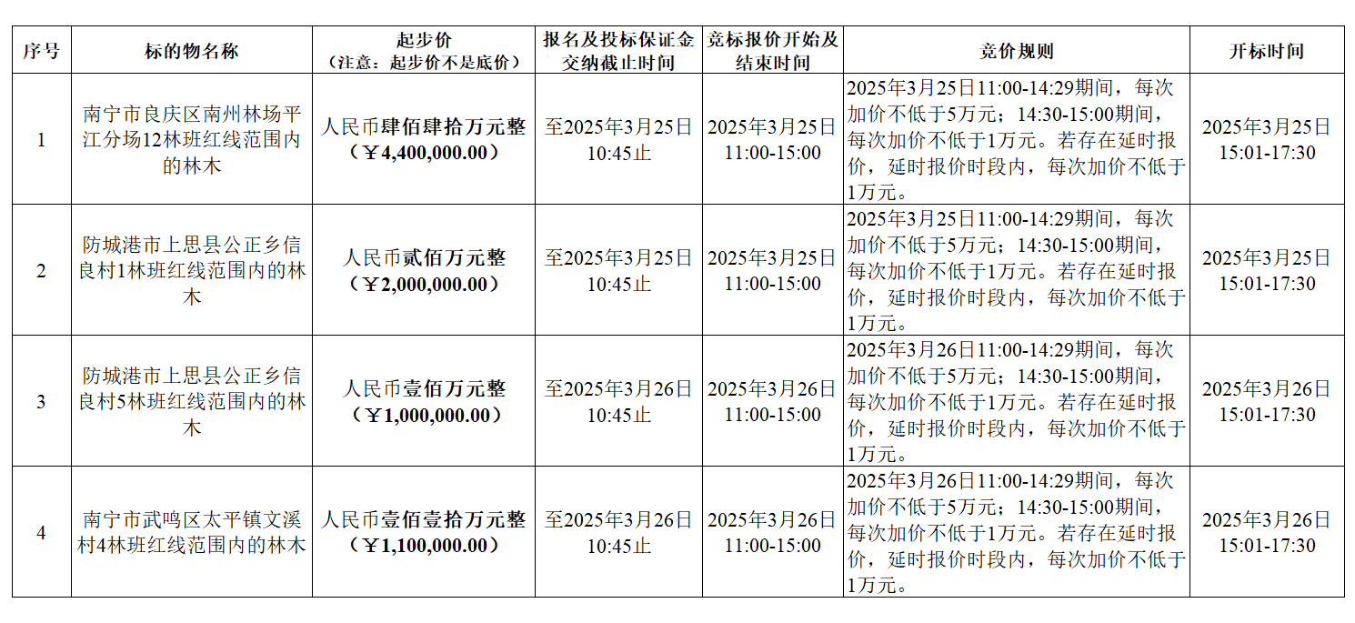 ¹ãÎ÷UÀÖ¹ú¼ÊÁÖUÀÖ¹ú¼Ê¹Ò¹ÙÍøÓÐÏÞ¹«Ë¾Äâ³öÊÛλÓÚÄÏÄþÊÐÁ¼ÇìÇø¡¢·À³Ç¸ÛÊÐÉÏË¼ÏØ¡¢ÎäÃùÇøÌ«Æ½ÕòµÈµØµÄ²¿·ÖËÙÉúèñ³ÉÊì»îÁ¢Ä¾£¬ÏÖÃæÏòÉç»á¹«¿ªÕб꣺
